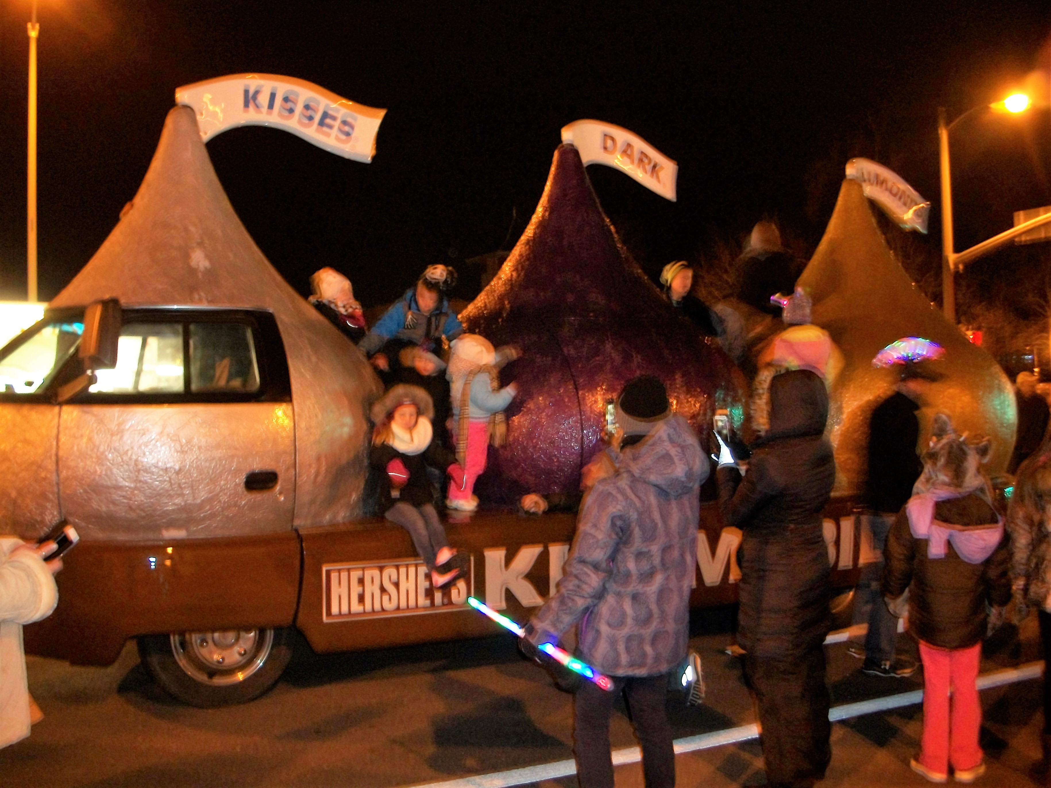 In Hershey, they raise a giant Hershey Kiss at midnight on New Year’s Eve. It’s seven feet tall, and 300 pounds of shiny steel shaped like the delectable dessert. The “flag” (kisses label) adds an additional five feet to the colossal confection.
