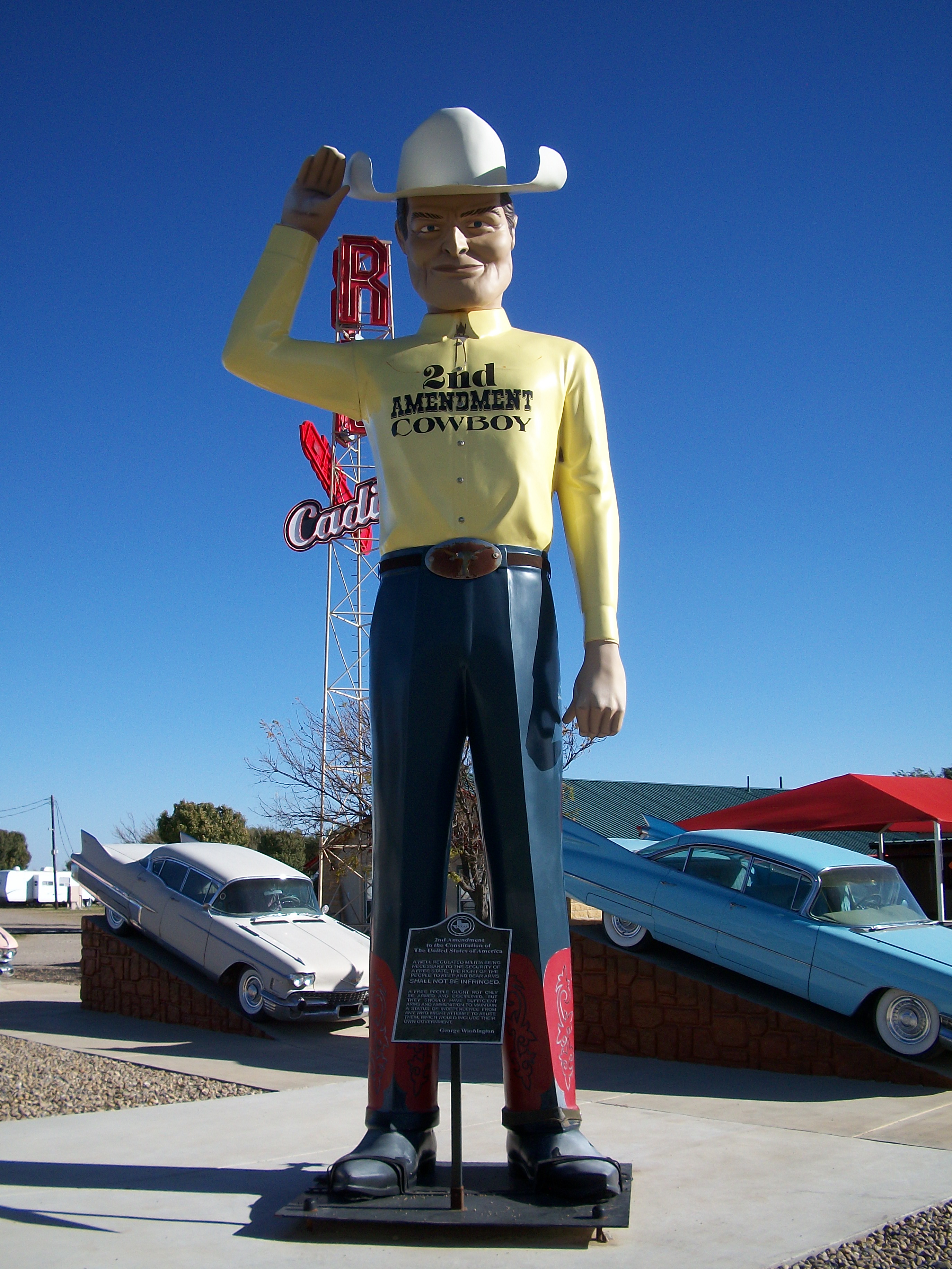 One of the many things I love about Texas – they stand by the Second Amendment, and they aren’t afraid to post it with a 30′ foot cowboy.