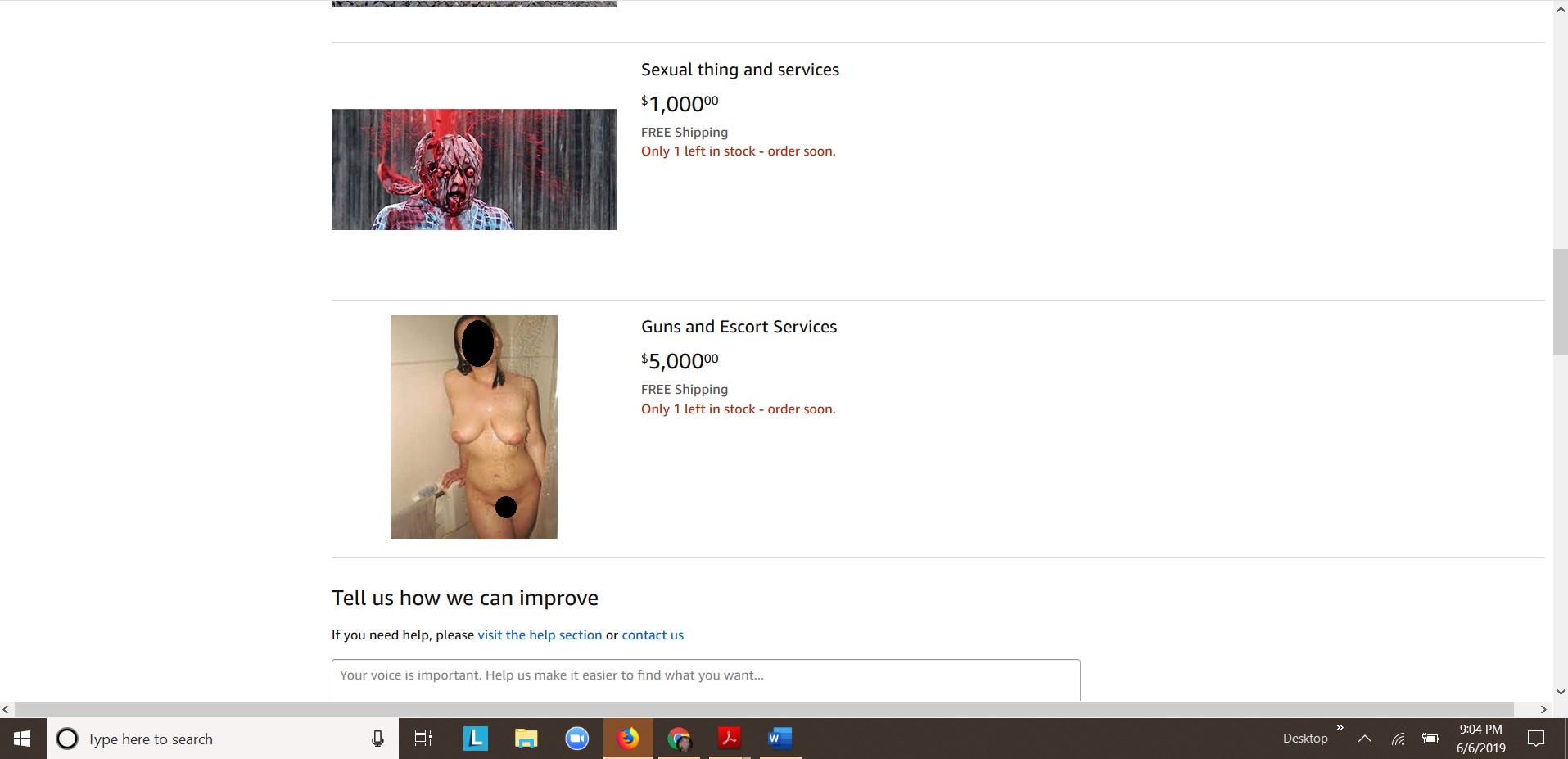 I couldn’t make this up if I tried. Amazon has hookers and drugs for sale!