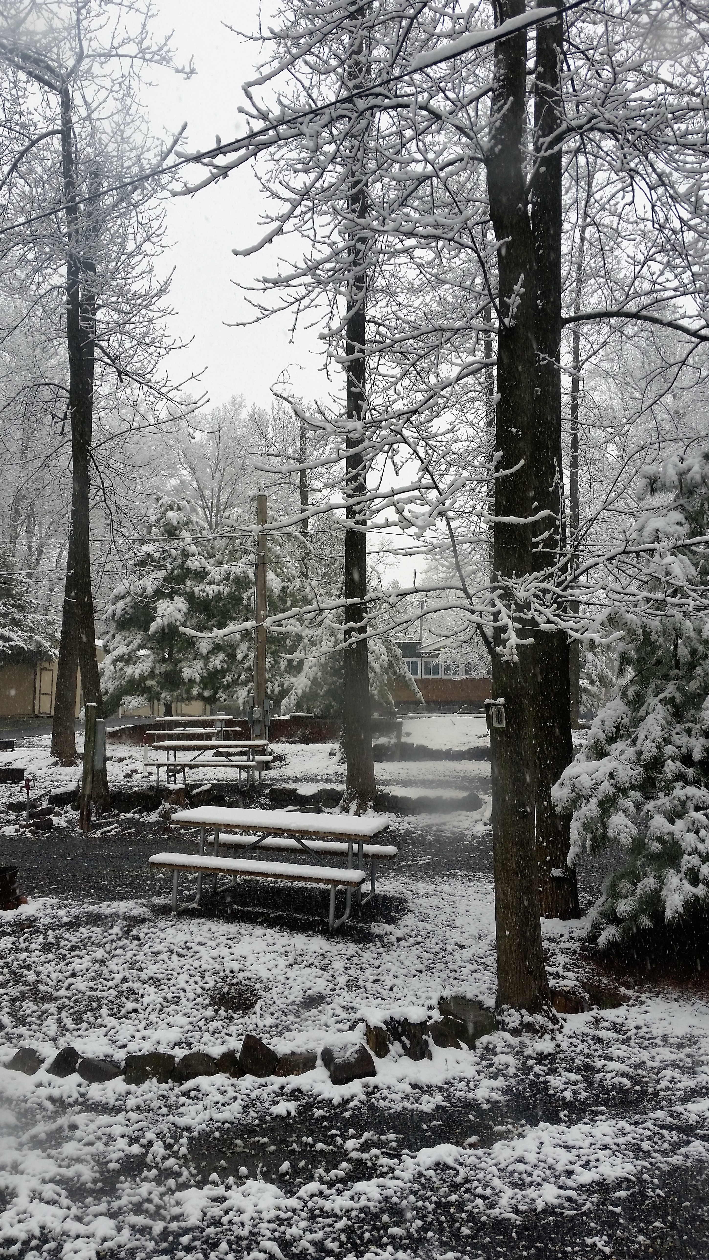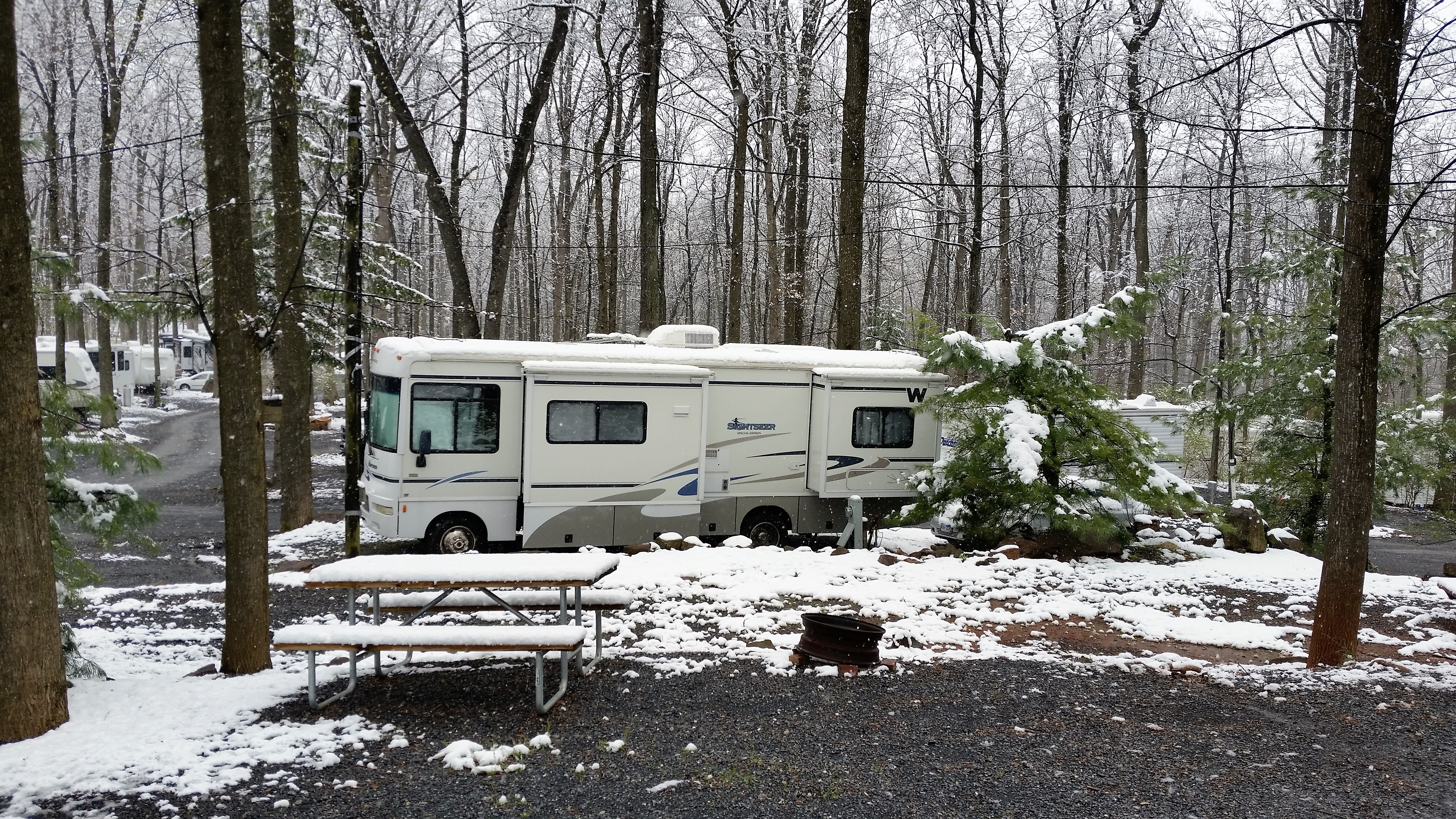 This is from the little snow storm in April. The RV park was just as lovely covered in a light blanket of snow.