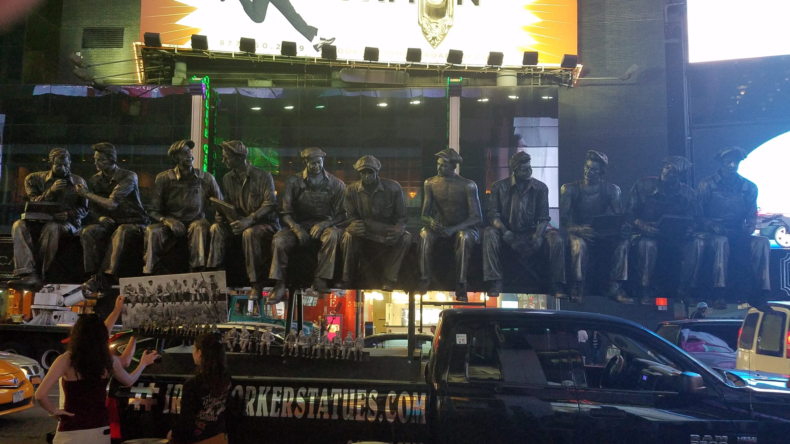 Sculpture in Times Square. This is a depiction of the famous 1932 photo “Lunch atop a Skyscraper”, which chronicled a moment in time of the steelworkers eating lunch high above the ground.
