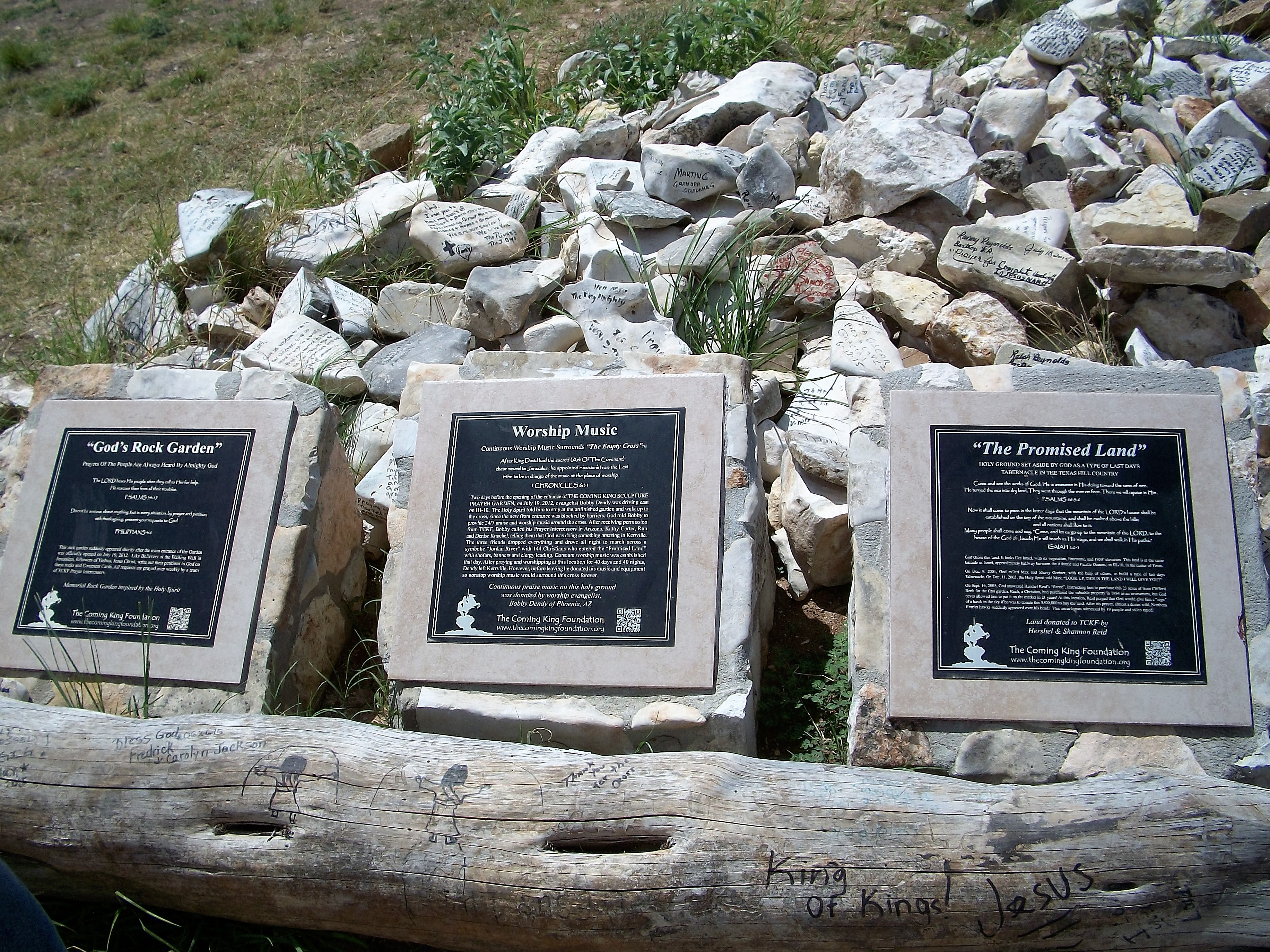 The Empty Cross watches over the prayer rock garden, and the bronze sculpture and scripture garden on the hillside below. More sculptures are being added as the park receives donations.