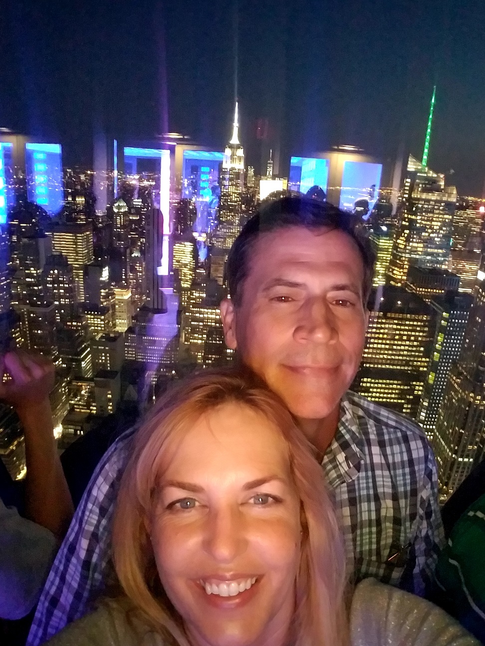 Jeff and I posing for the obligatory selfie at The Top of The Rock. (He looks as handsome as ever, and I look like I have a fang. WTF?)