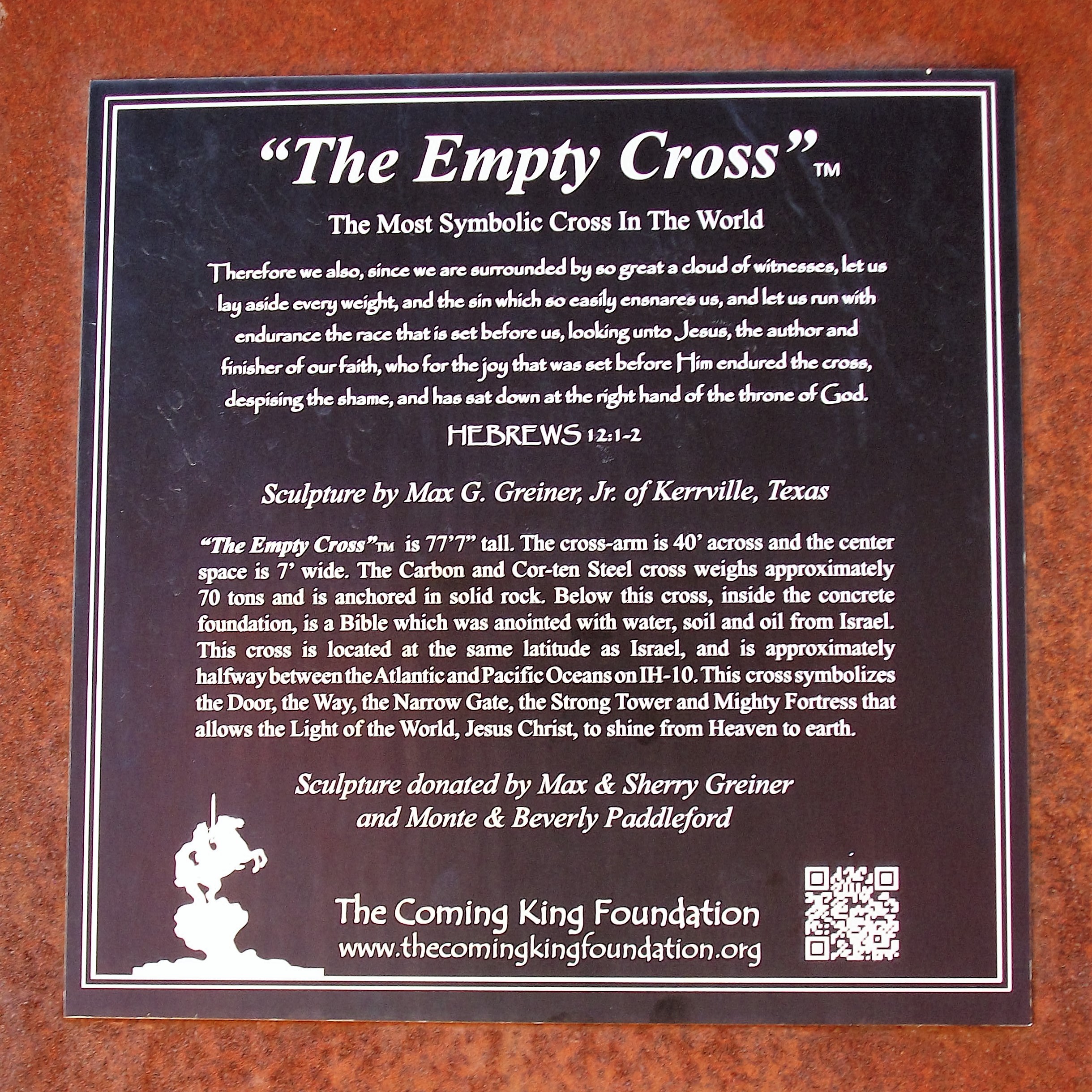 Kerrville, Texas, is home to The Empty Cross, a 77′ 7″-tall, 70-ton steel tribute to Christianity. It is the largest cross I’ve ever visited, but it isn’t the largest in the world, nor the largest in the US.
