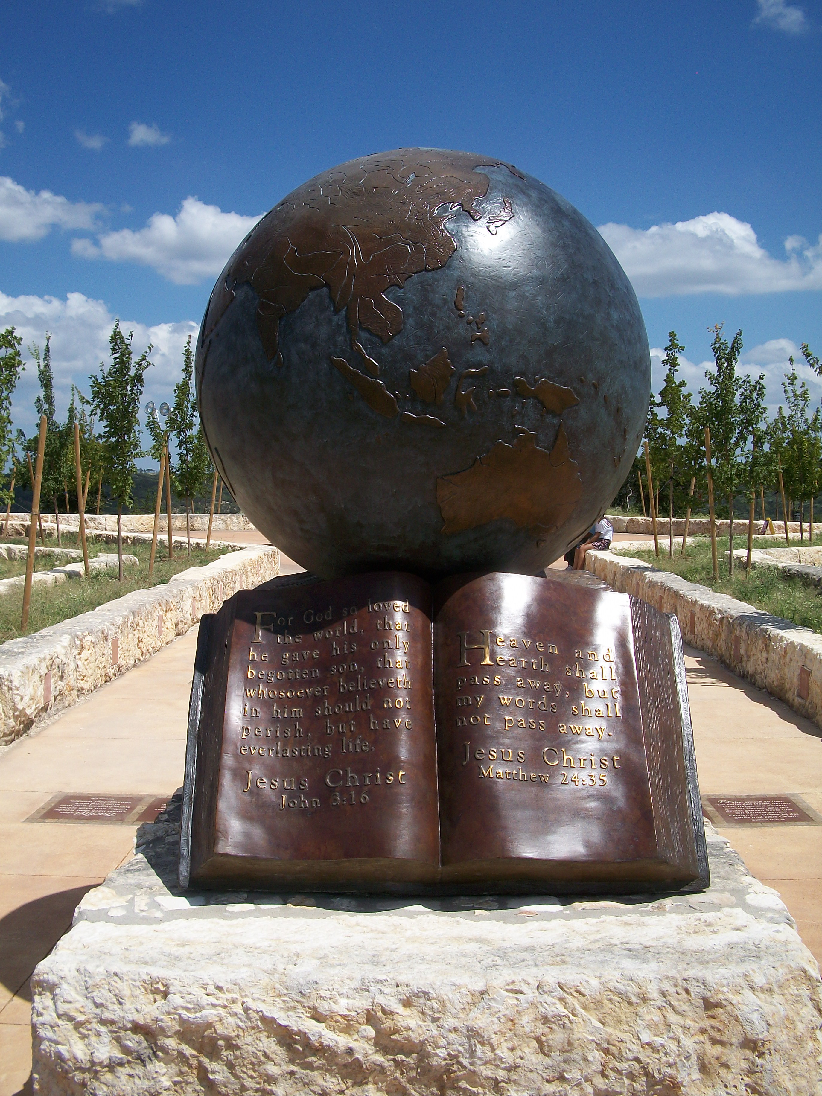 The Empty Cross watches over the prayer rock garden, and the bronze sculpture and scripture garden on the hillside below. More sculptures are being added as the park receives donations.